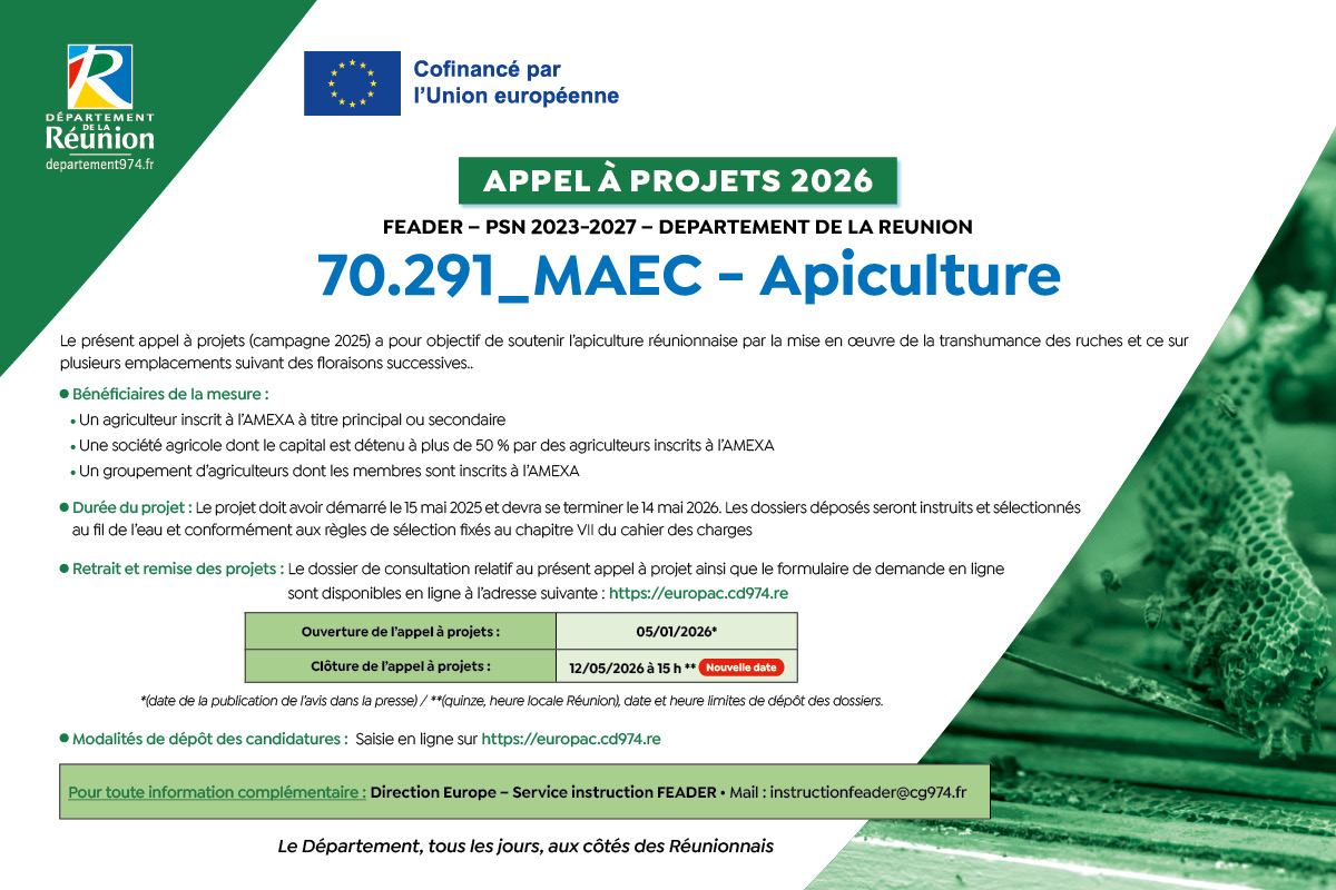 Le présent appel à projets (campagne 2025) a pour objectif de soutenir l’apiculture réunionnaise par la mise en œuvre de la transhumance des ruches et ce sur plusieurs emplacements suivant des floraisons successives.