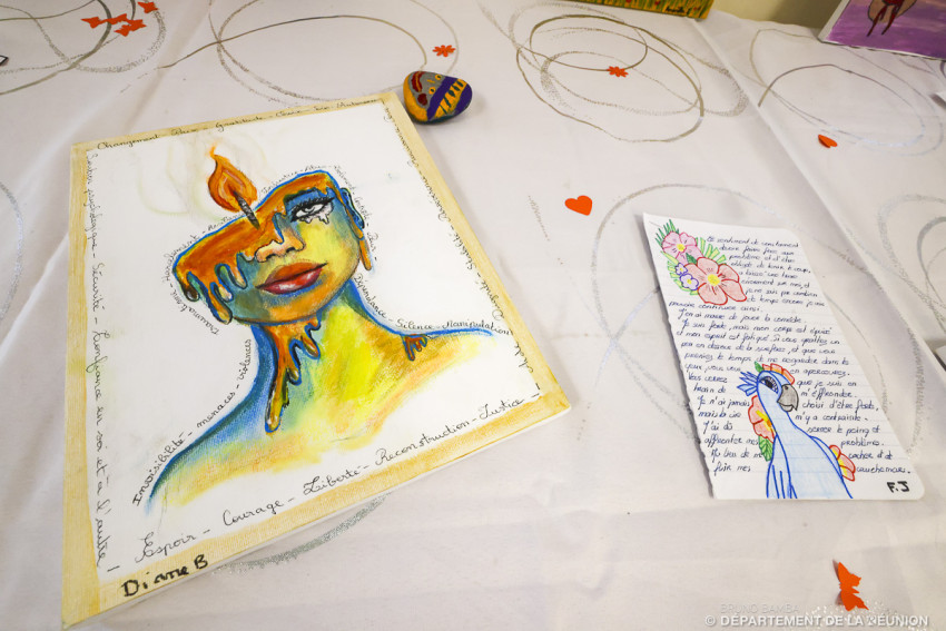 À l’occasion de la Journée internationale pour l’élimination des violences faites aux femmes, le Département organisait ce mardi 25 novembre le vernissage de l’action collective « Autour de la peinture », portée par le Service Prévention Polyvalence Insertion (SPPI) de la Maison départementale de Saint-André.