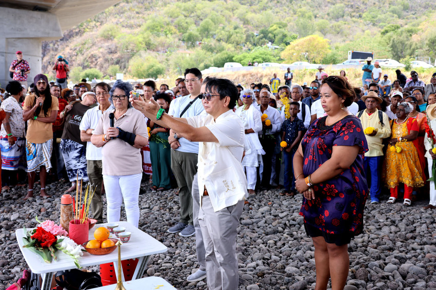 Face à la mer, les officiants des diverses communautés ont consacré d’intenses moments de prière, d’offrandes et de recueillement, en hommage aux travailleurs engagés de La Réunion. Après les cérémonies organisées à tour de rôle par la Fédération Tamoule de La Réunion, la Fédération des Associations Chinoises de La Réunion, les associations KAFPAB, MIARO, ZANGOUN ainsi que l’Association Musulmane de La Réunion, le public était invité à jeter des fleurs dans l’océan, en souvenir des ancêtres venus d’Inde, de Madagascar, de Chine, de Rodrigue, des Comores et d’autres pays du continent africain dont le Mozambique. C’était le moment fort de la désormais traditionnelle journée commémorative organisée chaque année à l’issue d’une grande procession partant du Lazaret, haut lieu de mémoire de l’engagisme et de la rencontre des peuples de l’océan Indien.