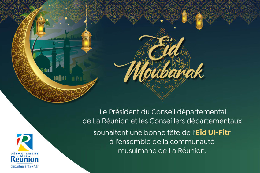 Le Président du Conseil départemental de La Réunion et les Conseillers départementaux souhaitent une bonne fête de l'Eid UI-Fitr à l'ensemble de la communauté musulmane de La Réunion.
