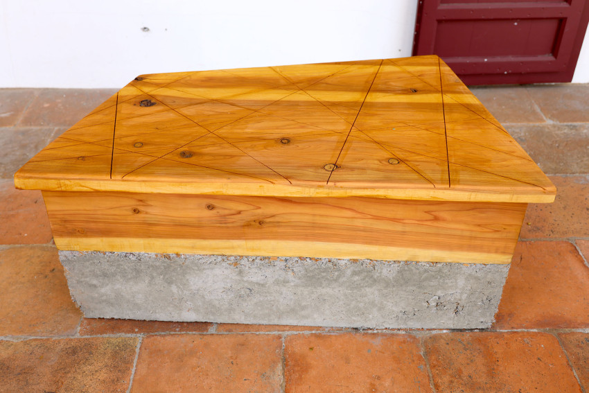 L’exposition incarne ce lien symbolique et physique entre les deux lieux. Le mobilier imaginé par l’artiste devient passeur : il franchit les limites, relie les jardins, accueille les visiteurs de passage dans un esprit d’hospitalité et de partage.