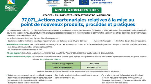Appel à projet : 77.071_Actions partenariales relatives à la mise au point de nouveaux produits, procédés et pratiques - 2025