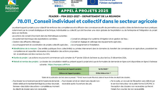 Dispositif : 78.011_Conseil individuel et collectif dans le secteur agricole Le présent appel à projets a pour objectif de renforcer des compétences et la diffusion des connaissances afin de permettre aux publics cibles de faire évoluer leurs pratiq ...