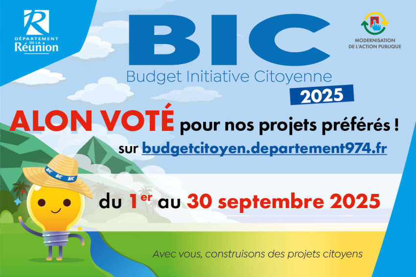 Dans le cadre de la troisième édition du Budget d’initiative citoyenne (BIC), le Département invite les Réunionnais à participer au BIC et à donner vie à leurs idées !