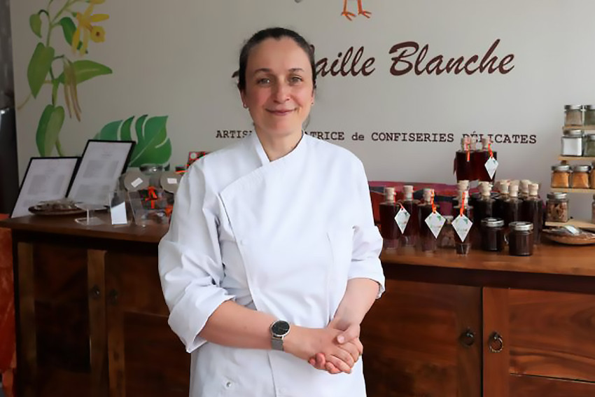 Valérie Baudard est artisane confiseuse et chocolatière. Elle fabrique une multitude de produits du côté de l’Étang-Salé : galabé, bonbons la rouroute, confiseries d’enfance… Elle expérimente également de nouvelles créations comme le velours de canne, les sucres d’infusion et des créations chocolatées aux accents végétaux.