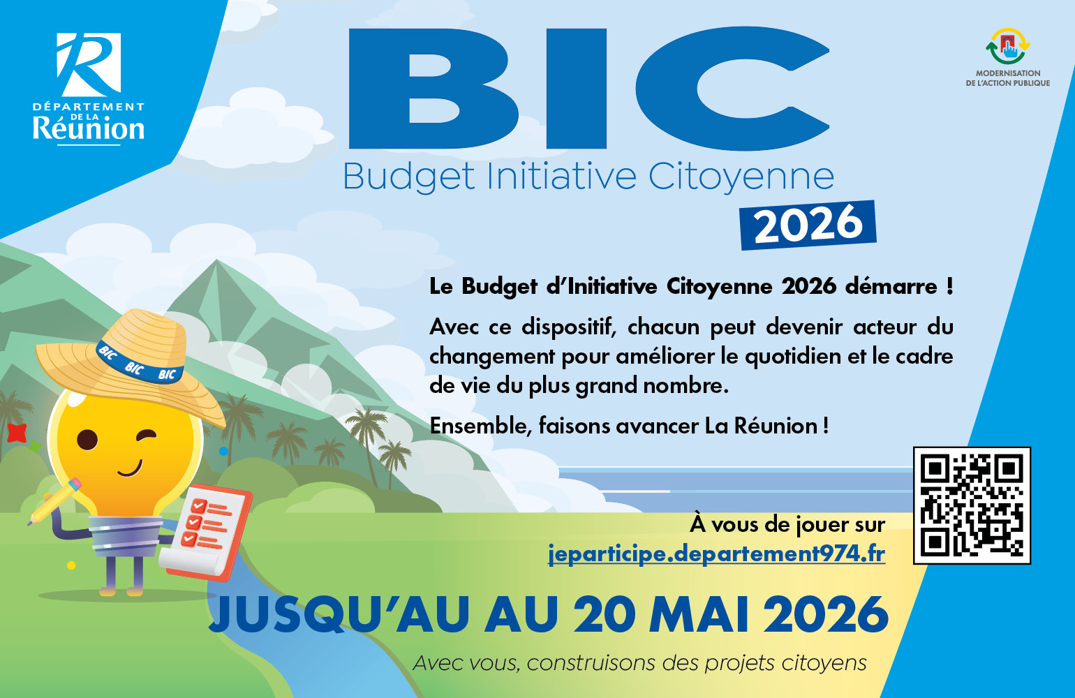 Le Département de La Réunion lance officiellement la quatrième édition du Budget d’Initiative Citoyenne (BIC) 2026. Ce dispositif permet aux Réunionnais de proposer des projets concrets pour améliorer leur cadre de vie et participer activement à la vie de leur territoire.