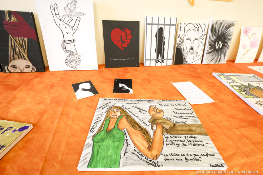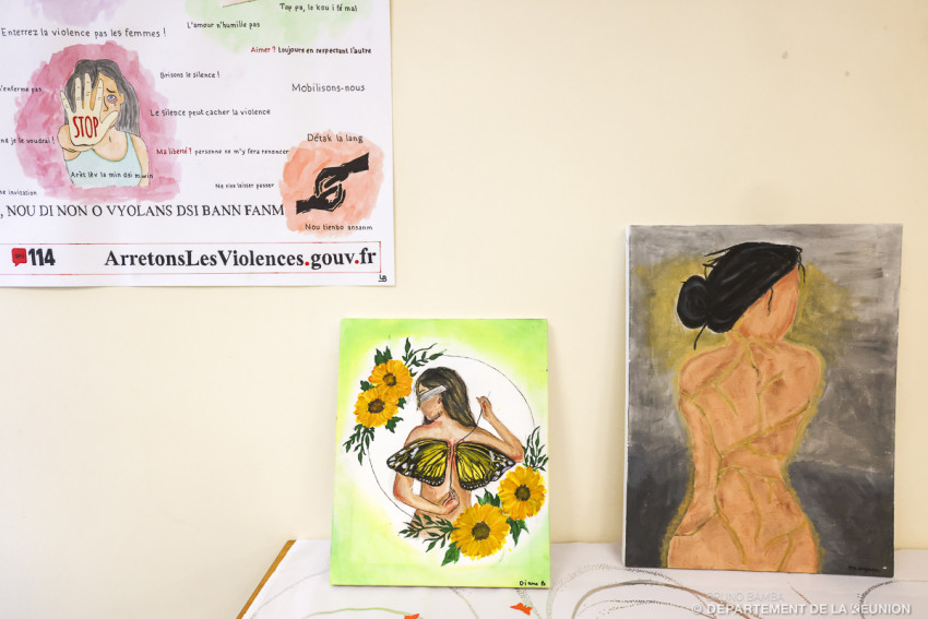 À l’occasion de la Journée internationale pour l’élimination des violences faites aux femmes, le Département organisait ce mardi 25 novembre le vernissage de l’action collective « Autour de la peinture », portée par le Service Prévention Polyvalence Insertion (SPPI) de la Maison départementale de Saint-André.