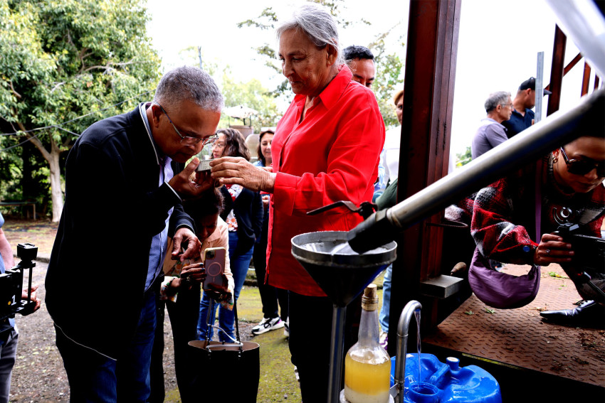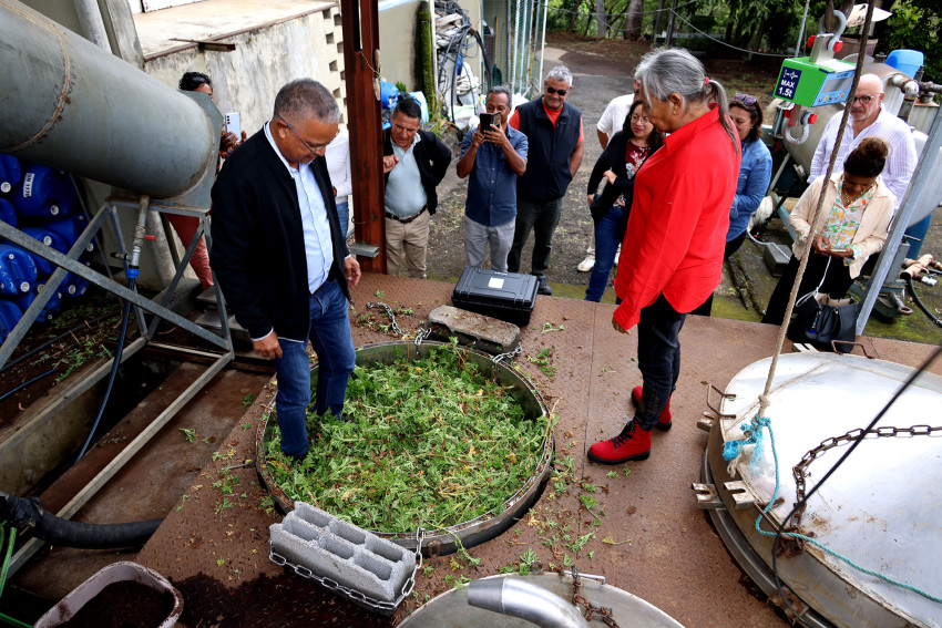 La visite s’est poursuivie à la distillerie de la CAHEB, où l’huile essentielle de géranium est extraite grâce à une chaudière également financée par le Département. Cette huile précieuse, obtenue par un procédé de distillation à la vapeur, s’exporte aujourd’hui dans le monde entier, renforçant la renommée de l’agriculture réunionnaise. Avec le soutien à la mécanisation et à la transformation, le Conseil départemental confirme sa volonté d’accompagner les filières agricoles locales, de préserver un savoir-faire historique et de donner à La Réunion les moyens de rayonner à l’international.