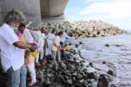 Face à la mer, les officiants des diverses communautés ont consacré d’intenses moments de prière, d’offrandes et de recueillement, en hommage aux travailleurs engagés de La Réunion. Après les cérémonies organisées à tour de rôle par la Fédération Tamoule de La Réunion, la Fédération des Associations Chinoises de La Réunion, les associations KAFPAB, MIARO, ZANGOUN ainsi que l’Association Musulmane de La Réunion, le public était invité à jeter des fleurs dans l’océan, en souvenir des ancêtres venus d’Inde, de Madagascar, de Chine, de Rodrigue, des Comores et d’autres pays du continent africain dont le Mozambique. C’était le moment fort de la désormais traditionnelle journée commémorative organisée chaque année à l’issue d’une grande procession partant du Lazaret, haut lieu de mémoire de l’engagisme et de la rencontre des peuples de l’océan Indien.