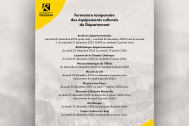 du jeudi 25 décembre 2025 au dimanche 4 janvier inclus [réouverture le mardi 6 janvier 2026)