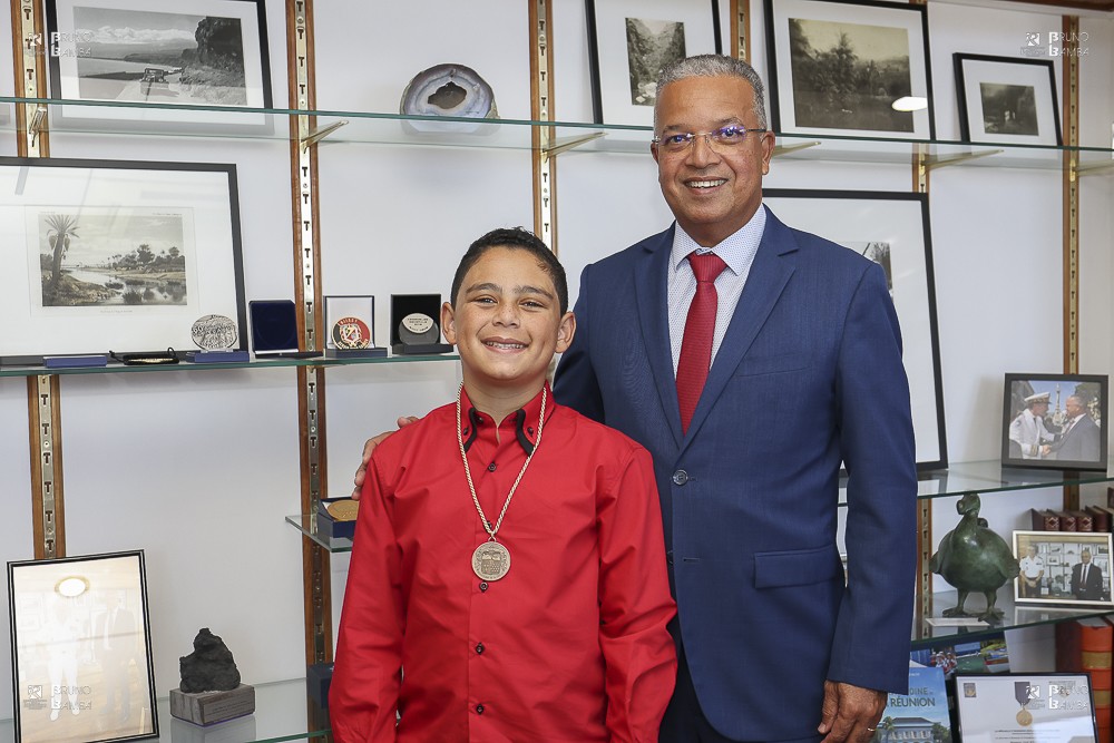 Pour le féliciter et rendre hommage à sa famille, le président du Département de La Réunion Cyrille Melchior l’a reçu au Palais de la Source.
