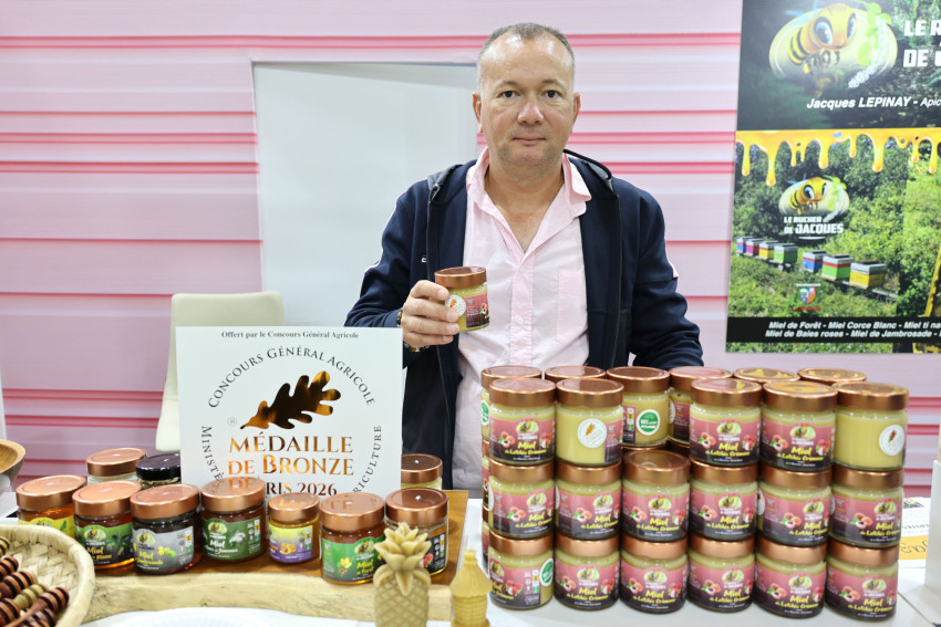 C’est sa première participation au SIA et il n’est pas prêt de l’oublier. Jacques Lépinay, des « Ruchers de Jacques », décroche une médaille de bronze pour son miel de letchis crémeux. « On m’a envoyé un mail pour me dire que j’avais remporté une médaille au Concours général. C’est une belle reconnaissance pour tout le travail accompli. »