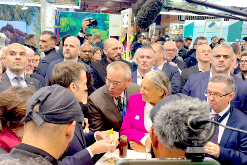 Ce samedi 21 février, l’espace a été visité par Emmanuel Macron, accueilli par le vice-président en charge de l’agriculture, Serge Hoareau. Le Président a fait le tour des stands et rencontré les exposants. La visite s’est achevée par une dégustation des produits du terroir réunionnais sur l’espace institutionnel du Département de La Réunion. Le goût, mais aussi l’ambiance, étaient au rendez-vous puisque le groupe « Trio Métiss’ » et ses danseuses lui ont fait découvrir le séga et le maloya. La ministre de l’Outre-mer, Naïma Moutchou et la ministre de l’agriculture, Annie Genevard, étaient également présentes pour cette visite au Village Réunion.