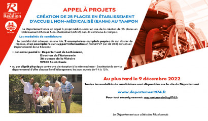 Appel à projet 2022 (clôturé) : Création de 25 places pour adultes en Etablissement d’Accueil Non-Médicalisé (EANM) au Tampon