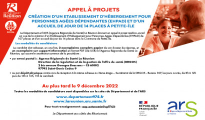 Appel à projet 2022 (clôturé) : Création d’un Etablissement d’Hébergement pour Personnes Agées Dépendantes (EHPAD) et d’un accueil de jour de 14 places à Petite-Ile